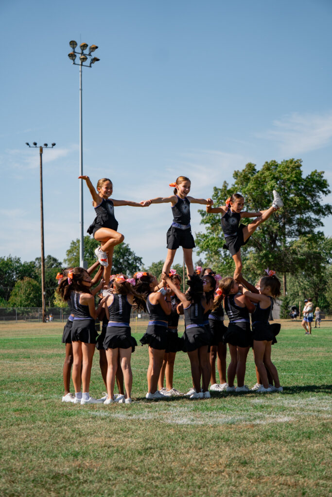 - Mini Cheer: Open to PreK through 1st grade. Learn cheerleading basics—motions, jumps, chants—and cheer at weekend football games. It’s all about building confidence, making friends, and having fun, with no competitions involved!